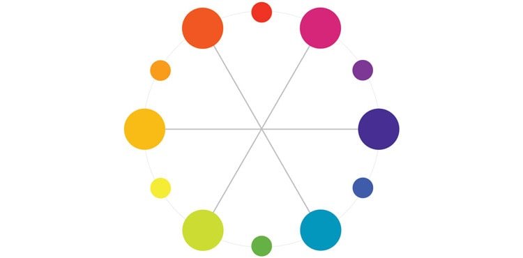 É comum os designers utilizarem círculos cromáticos para criarem composições de cores, os círculos cromáticos auxiliam na rápida identificação das cores primárias, secundárias, terciárias, das cores quentes e frias.